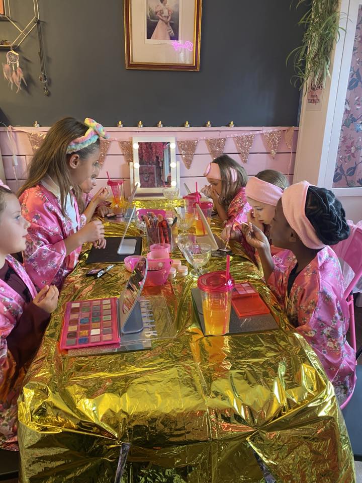 As you arrive, you’ll be greeted by a beautifully decorated setting, ready to begin your spa experience. The party starts with bespoke facials, make-up, mini manicures, and braids, all enjoyed while relaxing with friends and listening to their favourite music. It’s truly a party to remember!